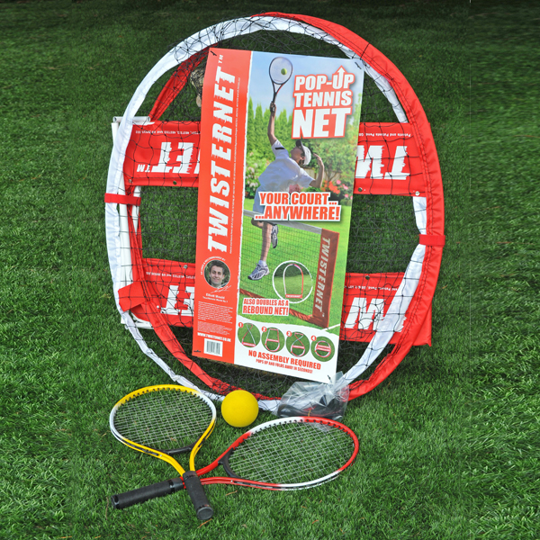 The Twisternet Pop Up Tennis Net is a new type of portable tennis net that makes playing tennis easy anywhere anytime. It pops out and folds down in a matter of seconds, as well as twisting into a rebound net for solo play. The benefit of the Twisternet is that it is very lightweight, you can take it anywhere and set it up in a matter of seconds for either groups, or solo play.